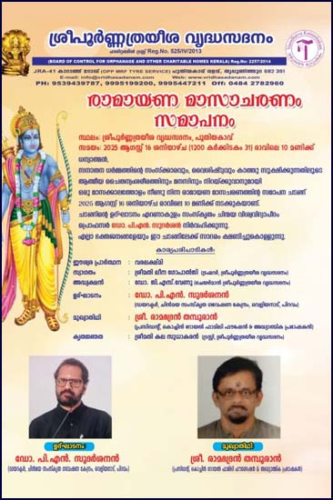 Sree Poornathrayeesa Vridha Sadanam at Tripunithura in Ernakulam is a rare care home for those aged people especially for ladies (Amma). It is founded on the great vedic vision of Vasudhaiva Kudumbakam and its motto is “Serve with Love and Affection”. Every act of kindness, every deed of mercy is viewed as holy. Duties are performed unselfishly, never desirous of rewards or returns.